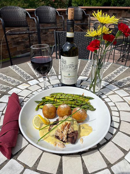 Pairing suggestion -- Andeluna Altitud Malbec Tupungato, Red with ruby hints and intense aromas of black and bell pepper along with notes of red fruits such as cherry and cassis. Round and full-bodied on the palate with notes of fruit and spice. 9/Glass, 30/ Bottle